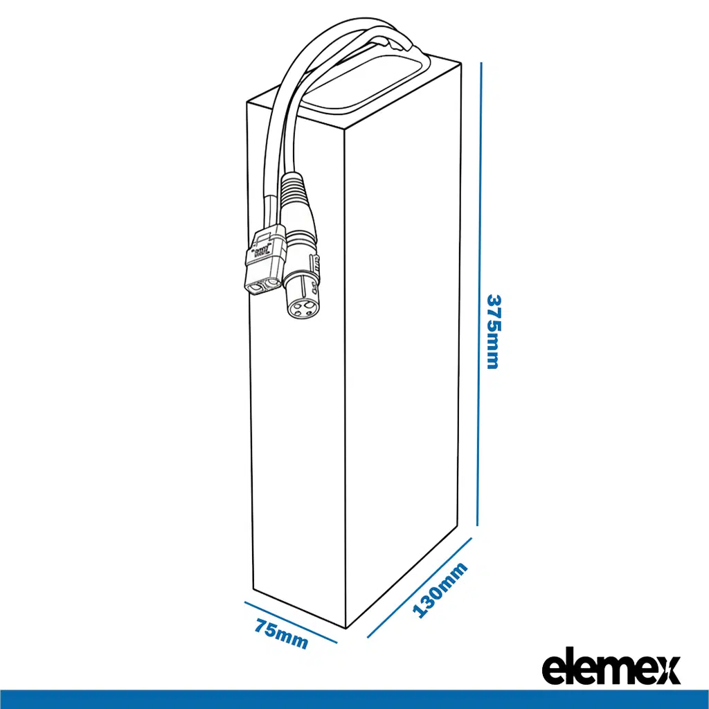 - Battery Dimensions: Approx. 375mm x 130mm x 75mm